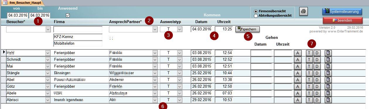 Besucherverwaltung / Besuchermanagement Programm-Software