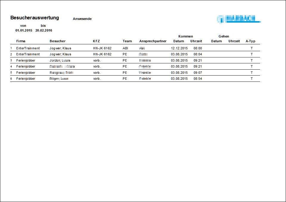 Jederzeit behält man die Übersicht in dem Besucherverwaltung Programm, wer momentan im Betrieb ist, oder wann und wo war.