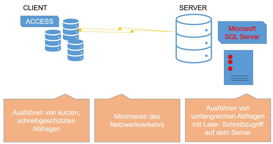 Zu meinem Kerngeschäft gehört das professionelle Erstellen von Datenbanken mit MS‑Access. Aktuell ziehe ich bestehende Access Anwendungen zu Access-Frontend mit SQL-Server Backend um. Der Vorteil dabei ist, dass die Performance, die Stabilität, sowie der Zugriff über VPN Leitungen besser ist. Zusätzlich kann ein weiterer Schutz der Daten über Benutzer, Benutzergruppen auf SQL Server eingerichtet werden, wobei der Datenschutz besser gewährleistet ist.